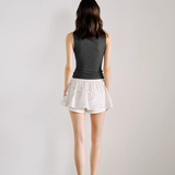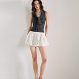 This top pairs beautifully with high-waisted trousers for a polished daytime look, or with wide-leg pants for a relaxed yet refined outfit. For warm-weather styling, wear it with linen shorts, midi skirts, or lightweight denim. It layers effortlessly under blazers, lightweight jackets, or open cardigans, allowing the knot detail to subtly peek through. For evening looks, style with tailored pants, heeled sandals, and minimal jewelry to emphasize the sculptural design. This piece works equally well as a standalone statement or as part of a layered ensemble.